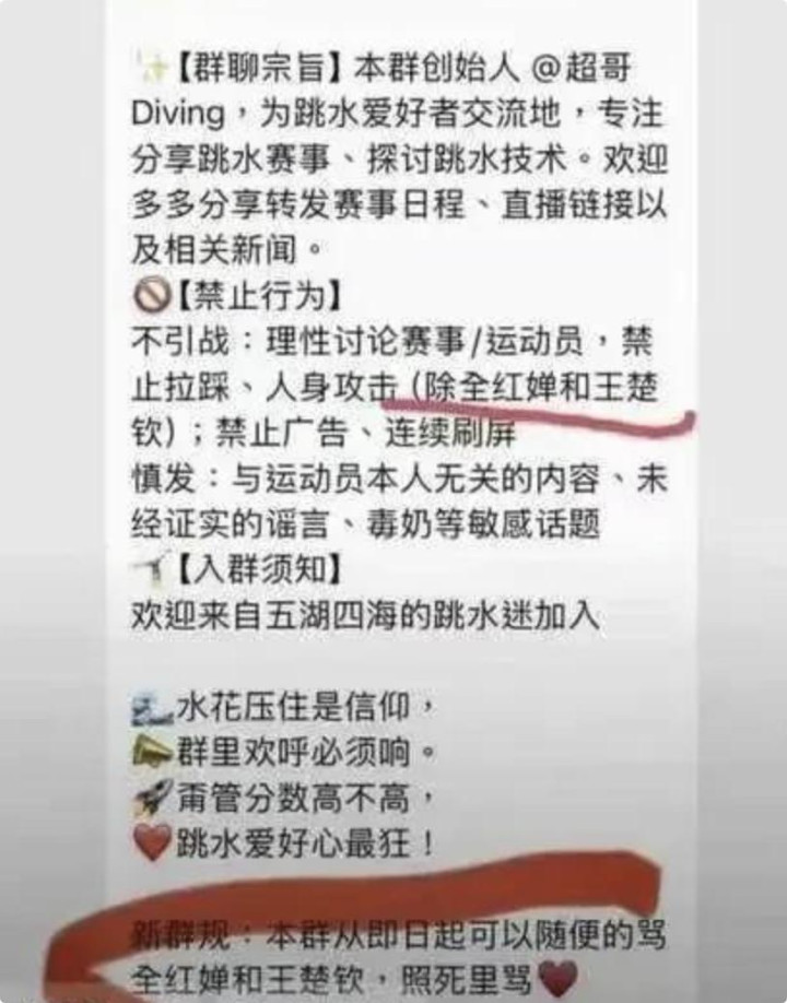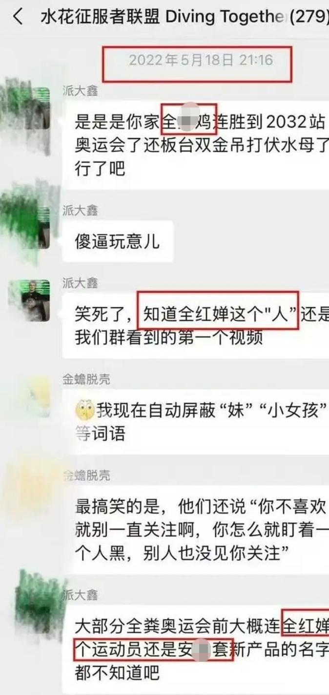 跟着事件的发酵,有网友传出音书,宣称这个群里藏着跳水队的多位队员,以致传出全红婵正在遇到队内的集体霸凌。