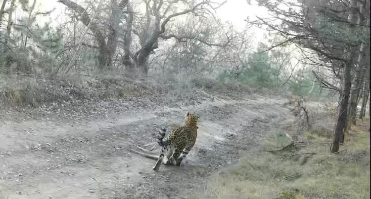 在2025年对甘肃子午岭省级自然保护区华北豹种群进行的系统监测中,庆阳市林业和草原局工作人员在华池县豹子川林区布设的红外相机中首次发现华北豹,画面中,华北豹叼着捕获的猎物,向前拖行。甘肃省庆阳市野生动植物保护站副站长张国亮介绍,这段视频有力地证明,与2023年基线相比,华北豹活动范围已向北直线延伸超过15公里,其栖息地成功由大凤川、太白片区拓展至豹子川林场。“这证明了华北豹的分布区域在不断地扩大,种群数量也在稳步地提升。”张国亮说。
