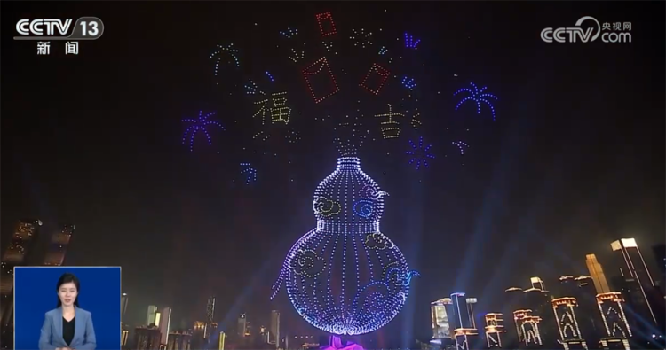 江水为幕、激光为笔,不久前,“新韵重庆”无人机灯光秀的上演给观众带来持续焕新的沉浸式观演体验,极具国潮韵味的“花开富贵”成为了当晚的一大亮点。一朵极富东方美学的花朵在夜色中缓缓舒展身姿,一只流光溢彩的蝴蝶翻然飞来,与花朵交相辉映。 “水陆空三维立体联动”形式拓展了表演层次与叙事空间,别具特色的国风系列也吸引了很多年轻人的目光。