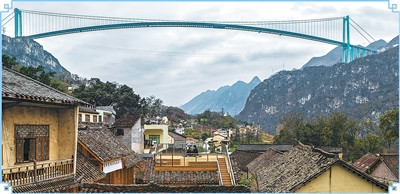 贵州贞丰县平街乡花江村,花江峡谷大桥与村寨相映成画。张帆摄(影像中国)