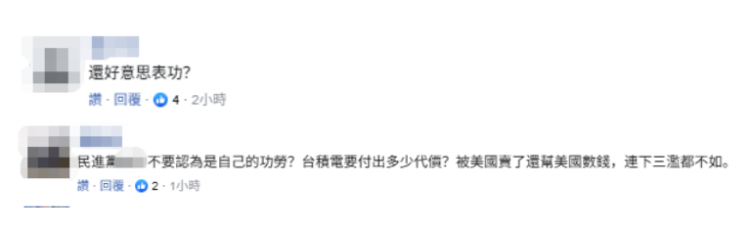 还有人批评民进党当局,“还好意思表功?”“不要认为是自己的功劳,台积电要付出多少代价?被美国卖了还帮美国数钱,连下三滥都不如。”
