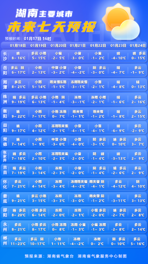 湖南主要城市未来7天预报