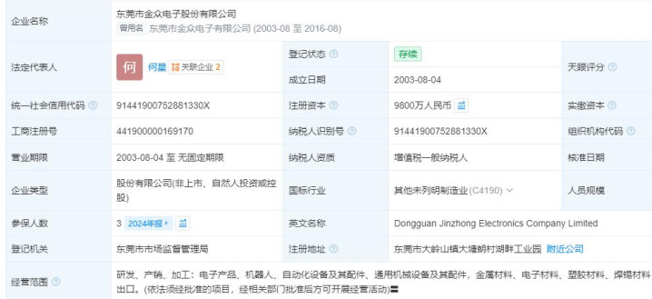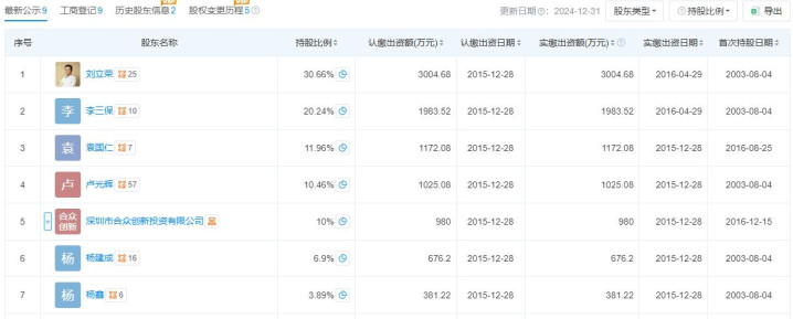 其次,当今何星是东莞市金众电子股份有限公司的法定代表东谈主,而刘立荣是东莞金众电子最大的鼓励,持股比例达到30.66%。