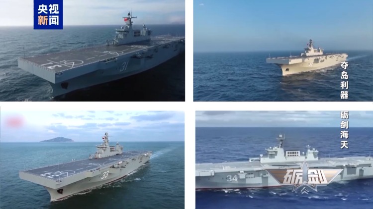 军事专家 曹卫东:无论是航母还是两栖攻击舰,它周边的配置都是相似或相同的,只是在具体完成不同海域或不同时间的军事任务时,它的数量有所增加或减少。比如说水下潜艇,有时候可能只有一艘,有的时候就需要两艘。在高强度作战的时候,可能就要有四五艘水面作战舰艇来进行护卫,而低强度作战时,可能就有两艘。