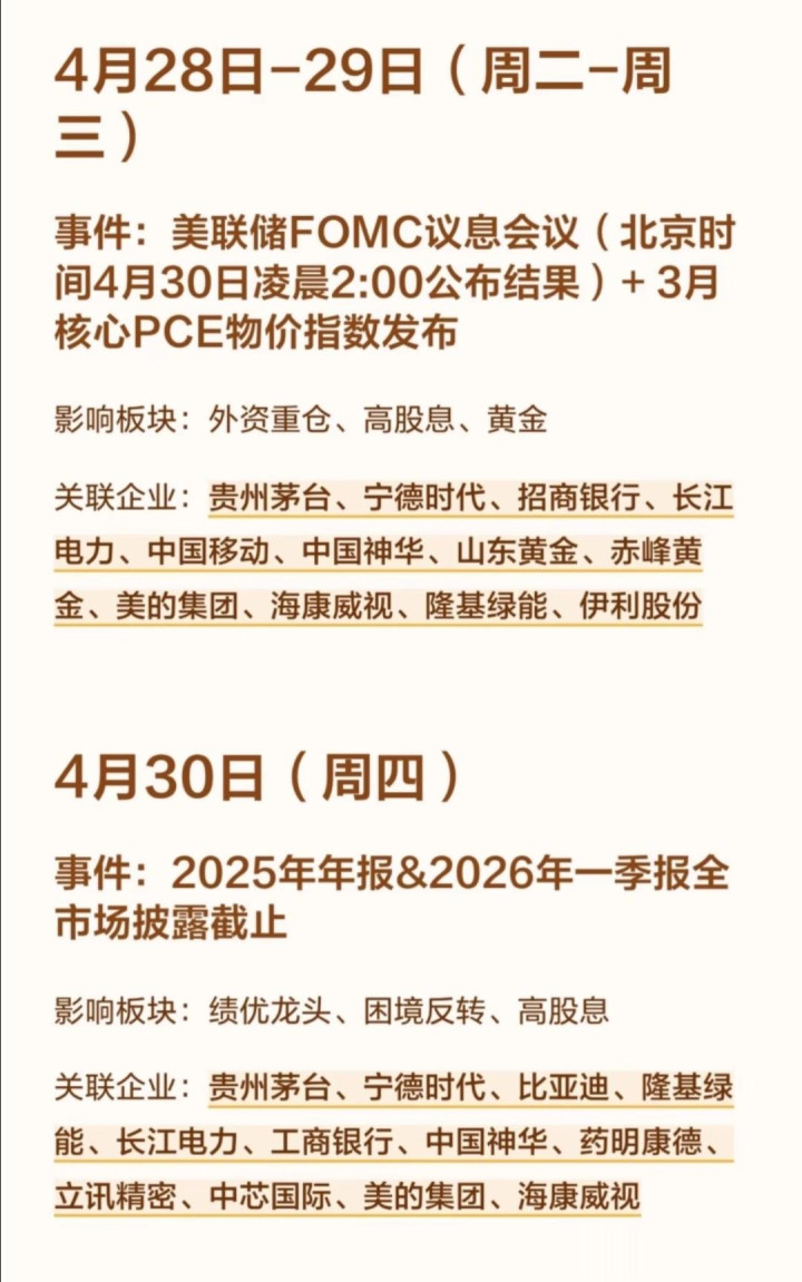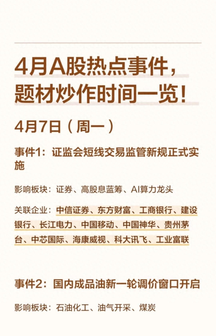 4月A股重磅事件日期!执准题材节拍,布局干线不迷途。