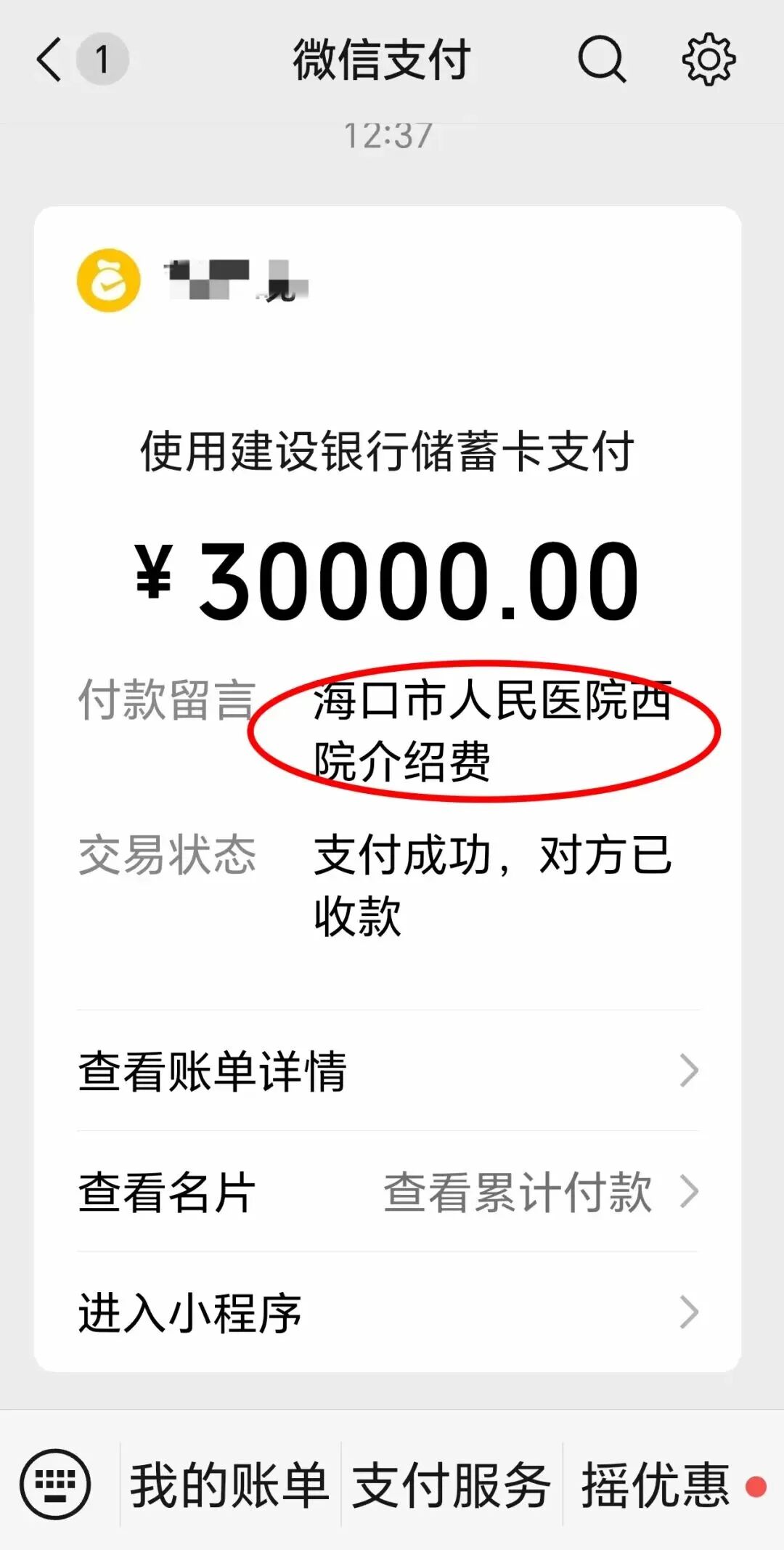 2025年11月18日,周女士又以员工熊某某的名字与汕德福公司签订了《海南医科大学第一附属医院江东新院门诊楼保洁服务合同》(合同履约金30万元),合同签订后,周女士又给汕德福公司付款30万元。同时,给梁某德转账2万元作为居间费。至此,周女士先后为此支付了80万元。