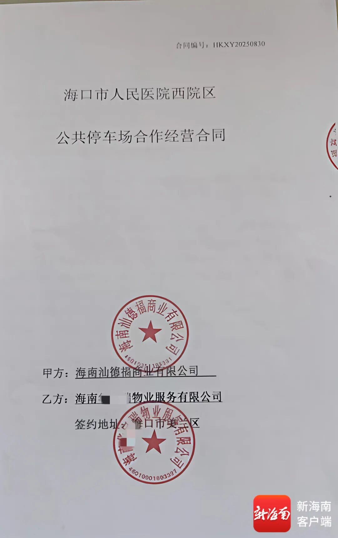 周女士安排的物业公司与汕德福签订的停车场经营合同。受访人供图