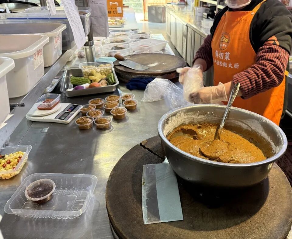 店员备餐、制作酱料。图/九派新闻 曾怡婷 杜文添