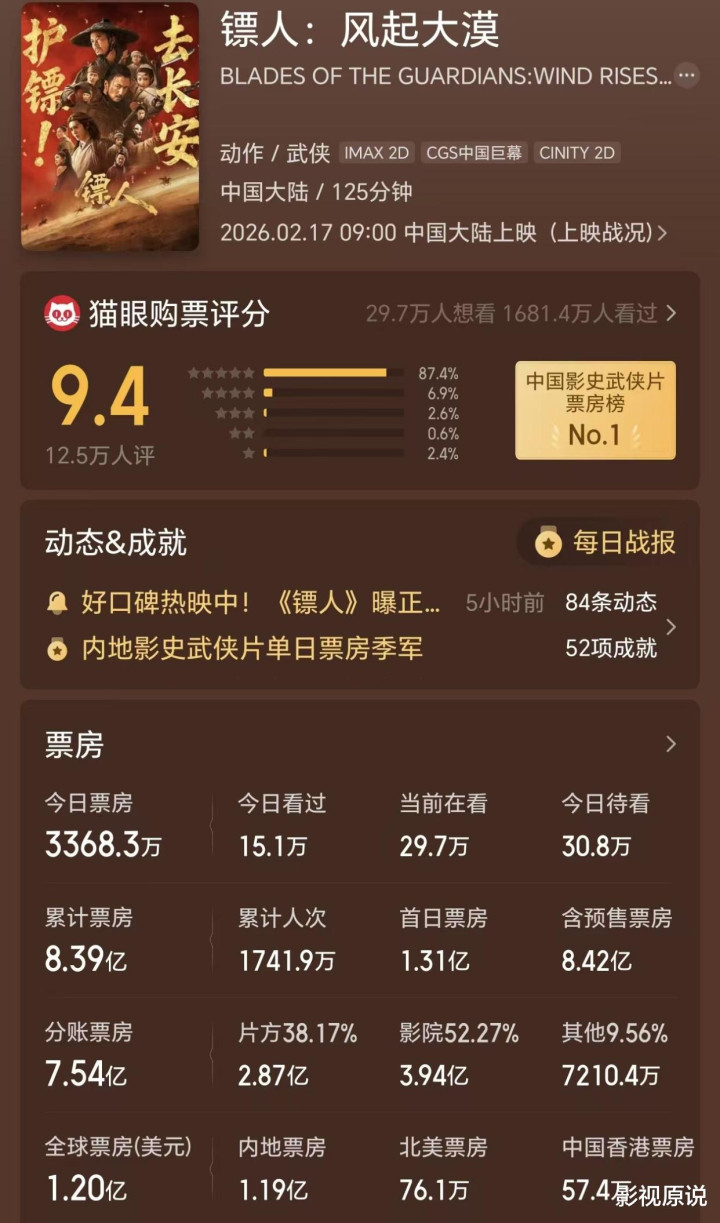 《镖东说念主》内地总票房达8.4亿东说念主民币,接连结巴了13项记载。