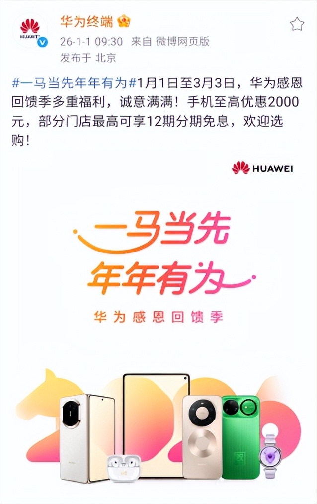 一马当先,年年有为! 华为感恩回馈季已开启,越用越好用的鸿蒙生态,正等待你亲自体验;而这份融合效率、安全与温情的电子年货,或许正是这个春节最走心的礼物。(兆华)