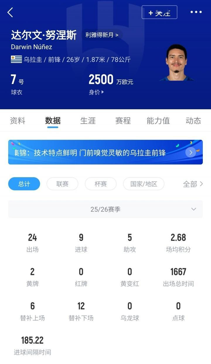 旧年夏窗,NBA下注app官网下载努内斯以5300万欧转会费从利物浦加盟利雅得眉月,开云app年薪约2500万欧。
