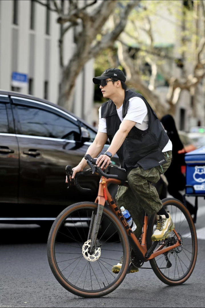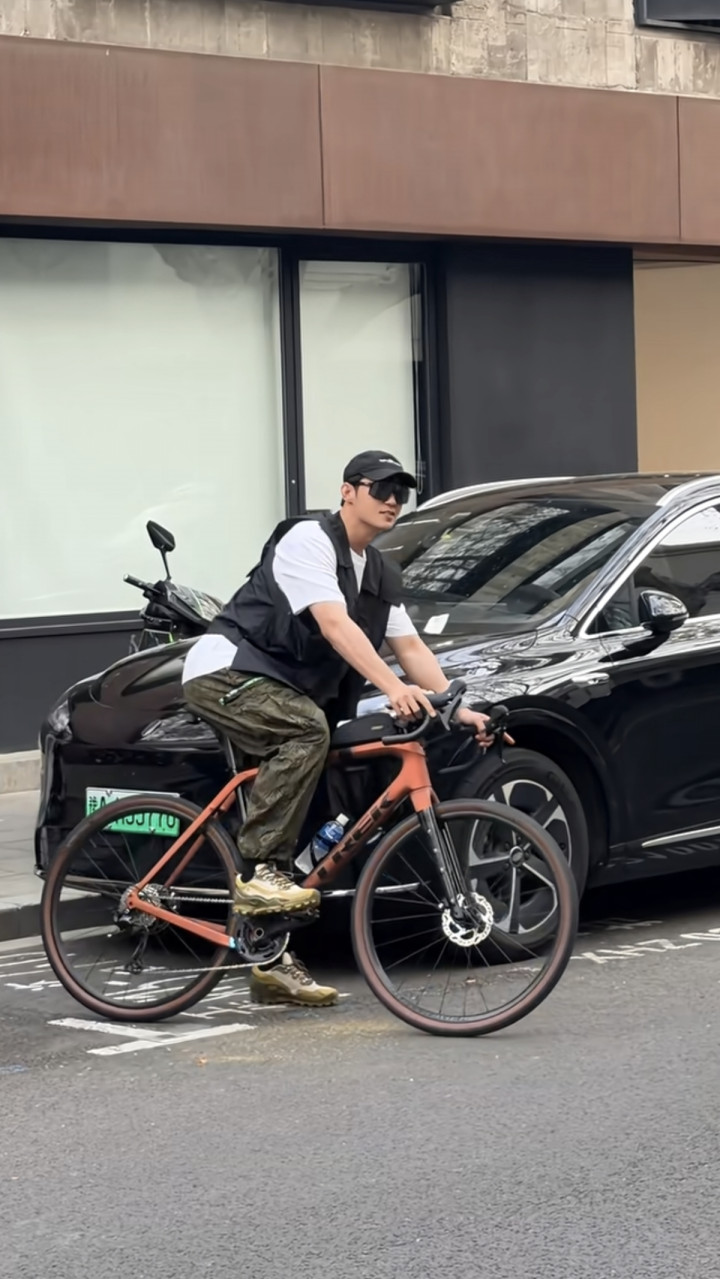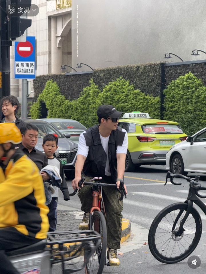 开云 又遛弯了! 黄景瑜上海街边被偶遇, 骑着自行车, 本东