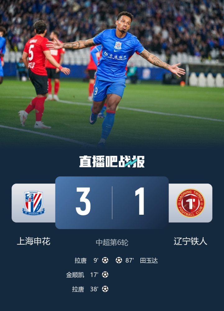 比赛的开局对申花来说几乎太顺利了。开场只是第9分钟,外助盖伊在禁区里背身把球作念给队友马纳法,马纳法一脚抽射被对方门将扑出,但球碰巧落到拉唐眼下,他浮浅补射佛门得分,1比0! 第16分钟,高天意传中,金顺凯一个漂亮的头球攻门,球又进了,2比0! 到了第37分钟,申花的三名外助在前场打出精妙互助,特谢拉传中,拉唐和盖伊撞墙互助后,拉唐低射远角再次破门,3比0! 半场还没松手,申花就也曾三球率先。
